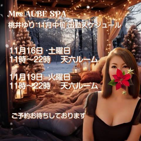 11月中旬 桃井ゆり🍑出勤スケジュール ご案内です💕人肌恋しい季節…✨ぬくもりに心なごむ桃井ルームへぜひ癒されに来てくださいね❤️二日間だけの出勤となりますご予約お待ちしております😊